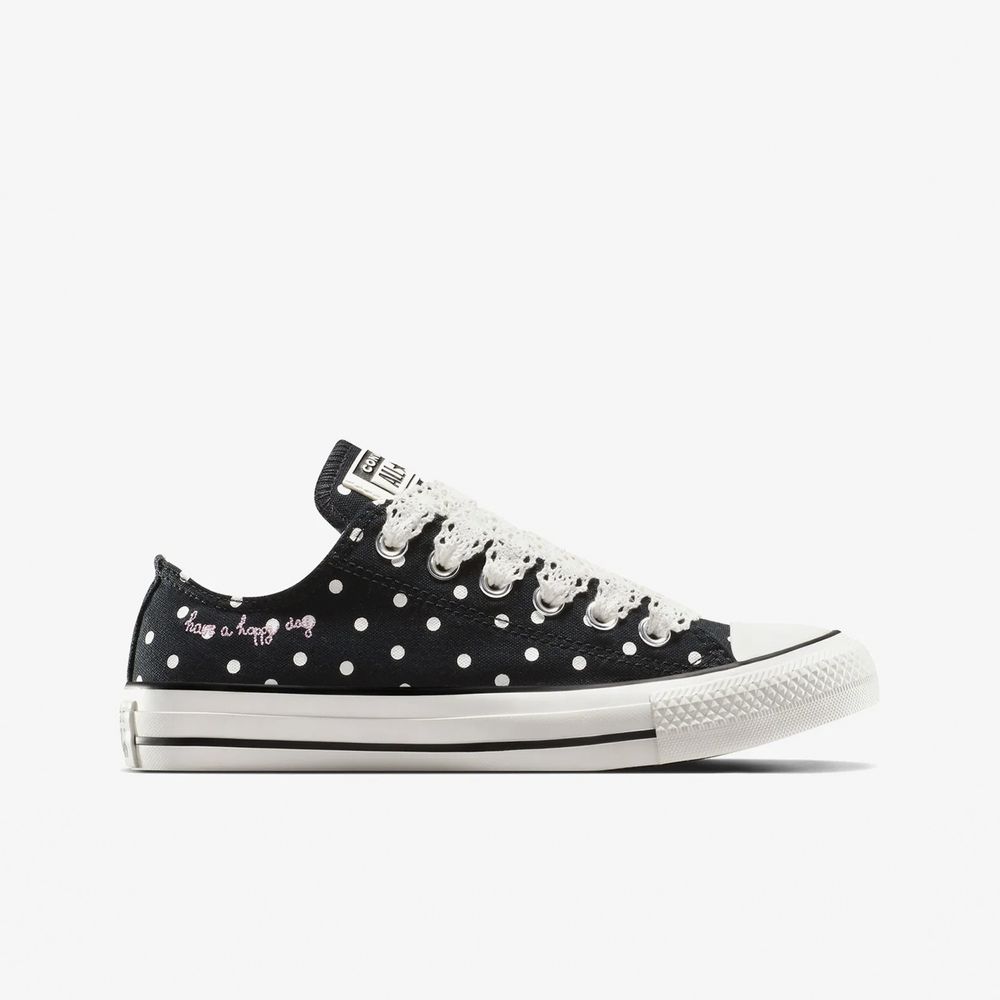Disfruta del clásico estilo de los Chucks con una resistente parte superior de lona. La amortiguación OrthoLite proporciona comodidad en cada paso. El estampado de lunares por toda la superficie añade un toque divertido y lleno de energía al diseño. Los cordones trenzados y los detalles bordados aportan un toque artesanal y sofisticado a tu estilo. Completa el legado de Converse con la icónica etiqueta All Star en la lengüeta y la placa en el talón.