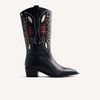 economía 27,99 €Estas botas de caña alta reinterpretan el clásico estilo western con bordados decorativos y acentos metalizados que realzan su diseño. Presentan punta ovalada y tacón cubano de 4 cm, junto con una cremallera lateral interna para un calce cómodo. La plantilla acolchada aporta una pisada suave y confortable. Altura de la caña: 28 cm.