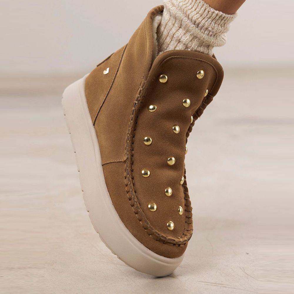 economía 15,99 €Estas botas Gioseppo combinan comodidad, calidez y estilo. Confeccionadas en piel color cuero, presentan tachuelas decorativas y un forro interior de pelo que aporta suavidad y calidez, convirtiéndolas en una opción perfecta para los días más fríos sin perder tendencia.