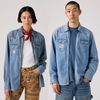 Esta shacket Western reinventa la emblemática camisa vaquera en un denim de peso medio y añade detalles únicos: una cremallera frontal completa, solapas con bolsillos dentados y botones de corchete nacarados. En la espalda, un estampado extragrande de Woody y Jessie decora el canesú, rindiendo homenaje a la esencia aventurera de la saga.