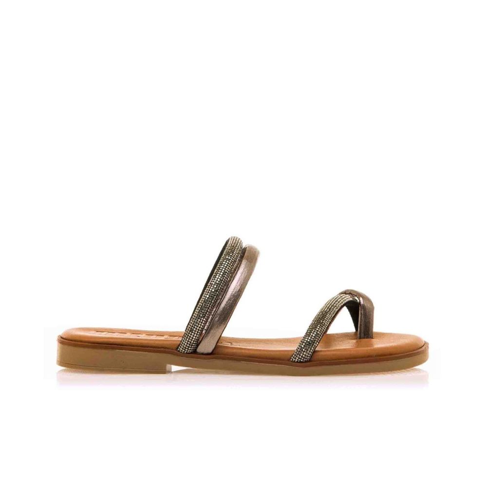 La sandalia Alysa de Mustang para chica brilla con estilo en un elegante tono oro platino. Su diseño destaca por la original combinación de tiras metálicas doradas y detalles de pedrería, que aportan un toque sofisticado y veraniego a cualquier look.