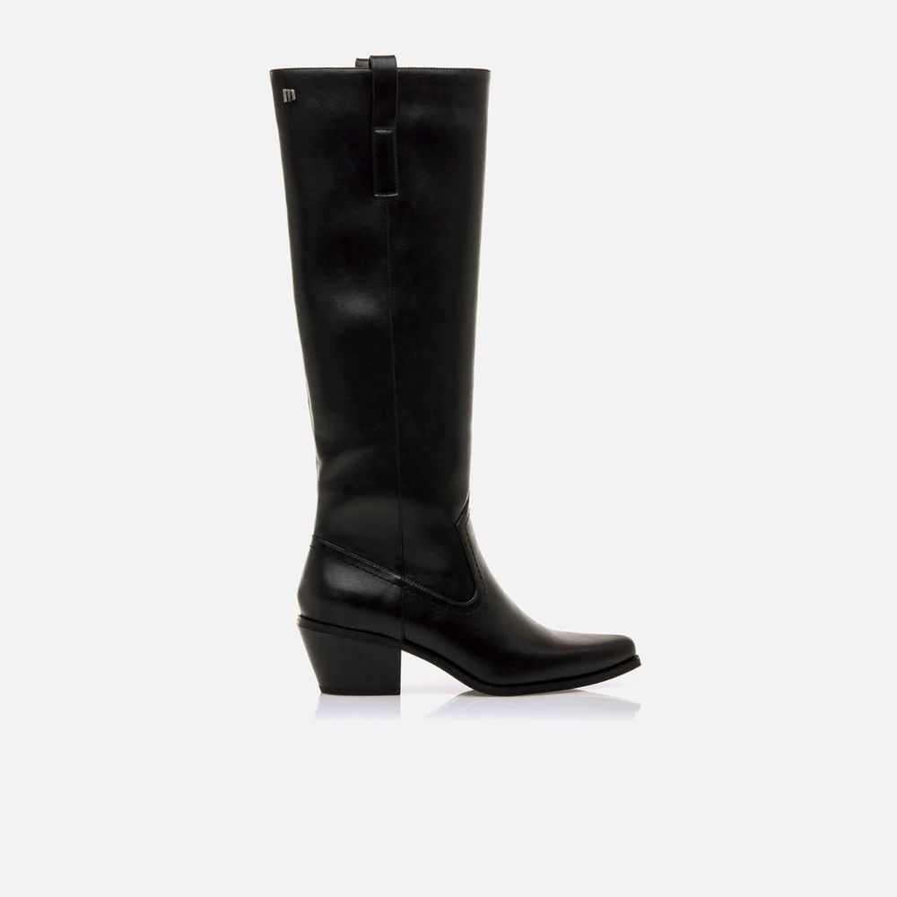 economía 13,99 €Botas cowboy altas de mujer Mustang Texas en color negro, un modelo que fusiona el espíritu del oeste con la elegancia urbana. Confeccionadas con una silueta de puntera afilada y tacón bajo, ofrecen comodidad sin renunciar al estilo. La caña alta con costuras decorativas realza su carácter western, mientras que los tiradores laterales facilitan el calce. Unas botas versátiles y con personalidad, ideales para combinar con vaqueros ajustados o vestidos fluidos.