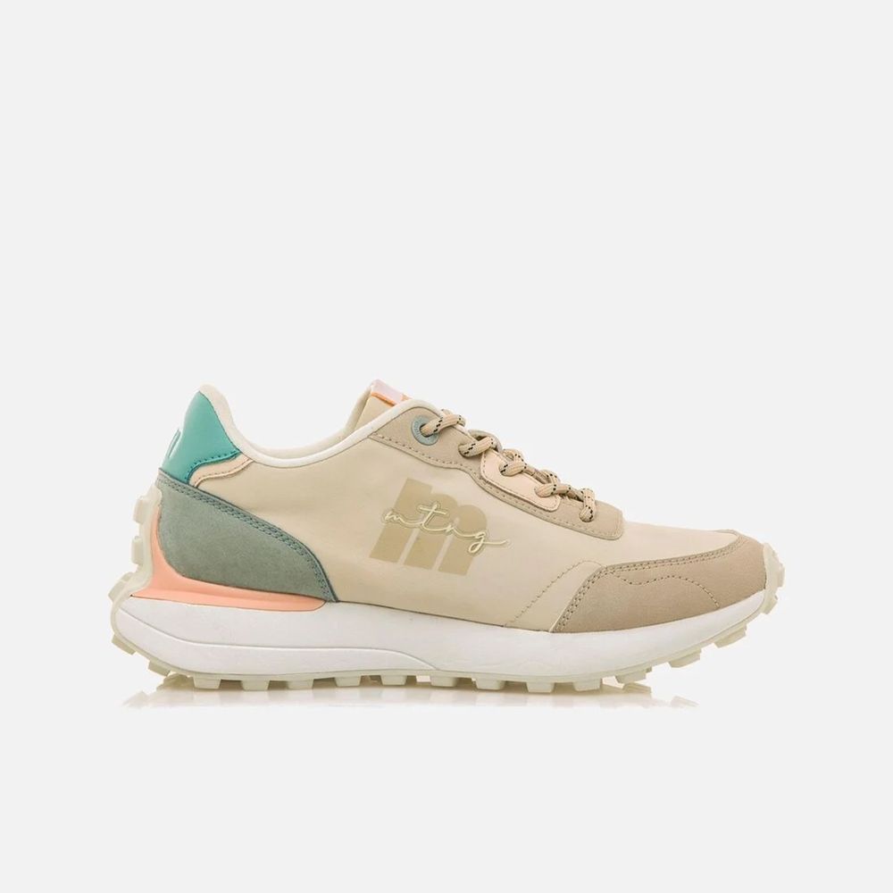 Las zapatillas Zinc de Mustang para mujer llegan en un tono beige versátil, realzado con detalles en azul y coral que aportan un toque original y fresco a tu estilo diario.