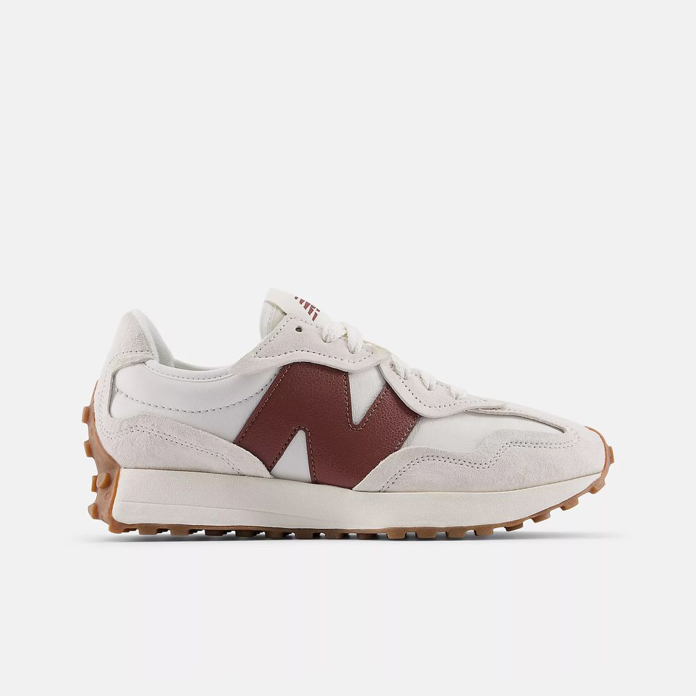 La 327 representa una mirada fresca a la década de los 70, una época de innovación, al reinterpretar de manera audaz elementos de diseño clásicos con una perspectiva totalmente contemporánea. Con un diseño angular renovado de la icónica silueta en forma de cuña, la distintiva marca "N" de gran tamaño y una suela con tacos envolvente inspirada en caminos, la 327 se erige como una digna heredera en el ámbito del running.