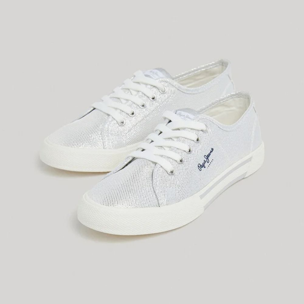 Eleva tu estilo con estas zapatillas básicas de Pepe Jeans, donde la comodidad se encuentra con el toque de moda. El tejido de sarga de algodón proporciona un ajuste suave y transpirable, mientras que el efecto metalizado en el tejido añade un toque moderno y llamativo a tu look. El cierre de cordones y los ojales metálicos aseguran un ajuste seguro y personalizado, perfecto para tus actividades diarias. El logo PEPE JEANS estampado en el lateral no solo agrega un elemento distintivo, sino que también refleja tu estilo urbano y desenfadado. Estas zapatillas son la elección ideal para quienes buscan un equilibrio perfecto entre comodidad y estilo audaz.