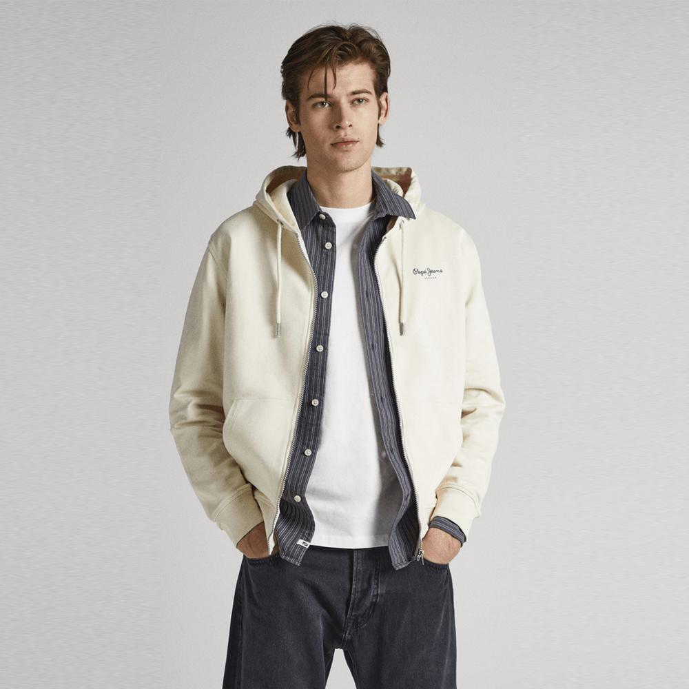 El cierre central de cremallera añade un toque práctico a la sudadera, facilitando su colocación y brindándote mayor comodidad al vestirla. Asimismo, el bolsillo canguro en la parte frontal te permite mantener tus manos calientes o guardar pequeños objetos de uso diario. En el pecho, encontrarás el logo PEPEJEANS estampado, que destaca la marca con elegancia y estilo. Los detalles canalé en los puños y el bajo le dan un acabado pulido y añaden un toque deportivo a la prenda.