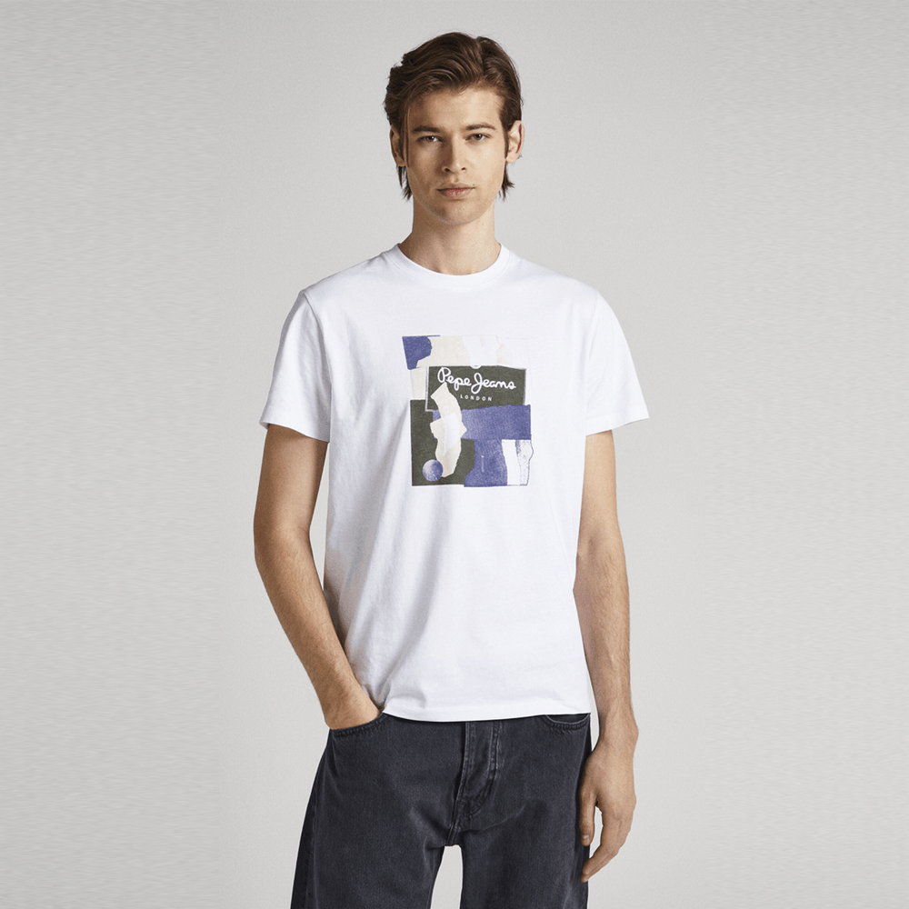 El color liso de la camiseta hace que sea fácil de combinar con cualquier conjunto, mientras que el estampado frontal del logo PEPEJEANS en contraste de colores agrega un toque moderno y distintivo. Además, el detalle canalé en el cuello le da un acabado elegante y pulido, elevando el estilo de la camiseta y haciéndola perfecta para lucir tanto en ocasiones informales como en looks más refinados.