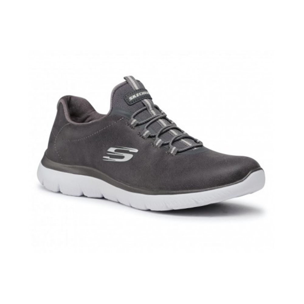 Deportivo muy cómodo para mujer de la marca Skechers. Sin necesidad da atar gracias a sus gomas elásticos. Fabricado en polipiel vegana y con suela de goma ligera antideslizante. La parte superior de duraleather y plantilla Skechers Memory Foam, media suela flexible y muy ligera con absorción de impactos. Talón y lengueta acolchados, forrada de tejido muy suave.