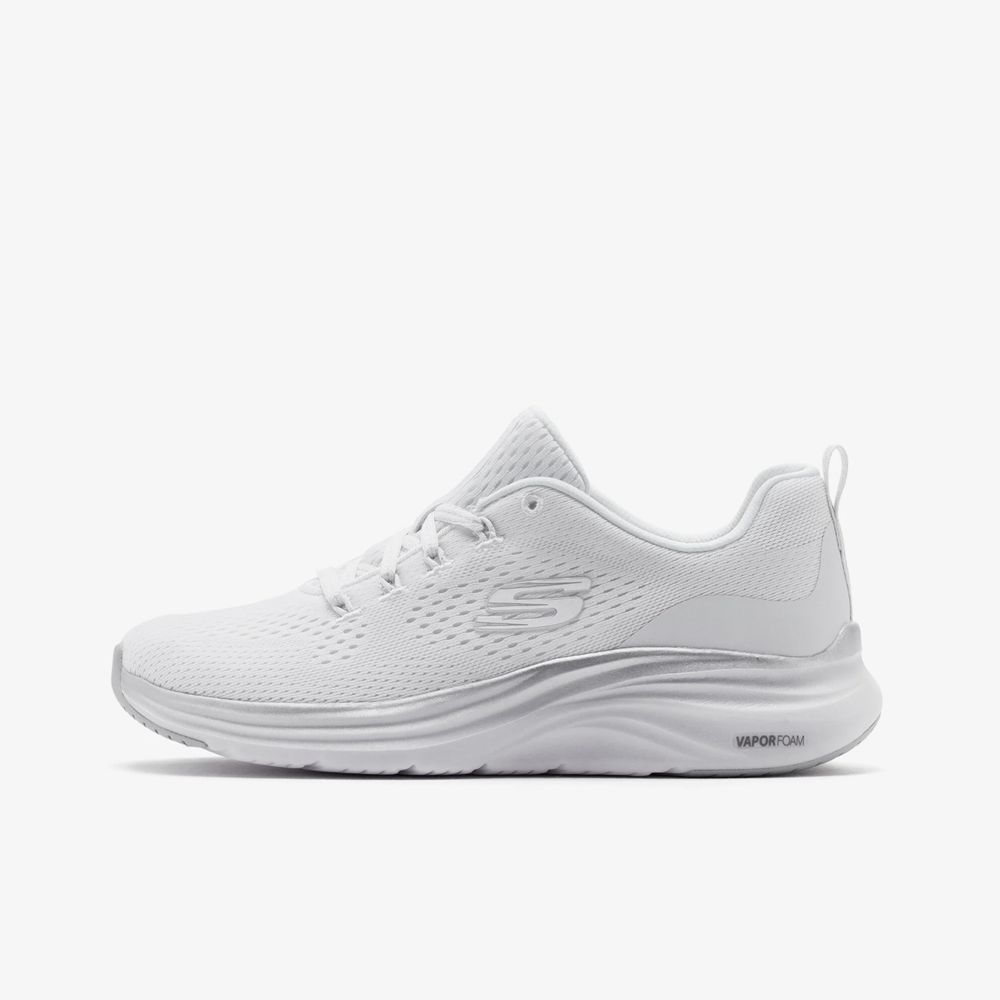 Atrévete a brillar con las Skechers Vapor Foam™ - Midnight Glimmer: cómodas, ligeras y elegantes. Esta zapatilla vegana con cordones presenta una parte superior de malla técnica que incorpora una plantilla Skechers Air-Cooled Memory Foam®, un ribete metálico y una amortiguación ultraligera Vapor Foam™. Además, cuenta con una cómoda plantilla Skechers Air-Cooled Memory Foam® y está fabricada con materiales 100 % de origen vegano. Detalles: Parte superior de malla técnica con ribete metálico y cordones en la parte delantera. Suela flexible con tracción. Altura del talón: 3,2 cm. Logotipo de Skechers®.