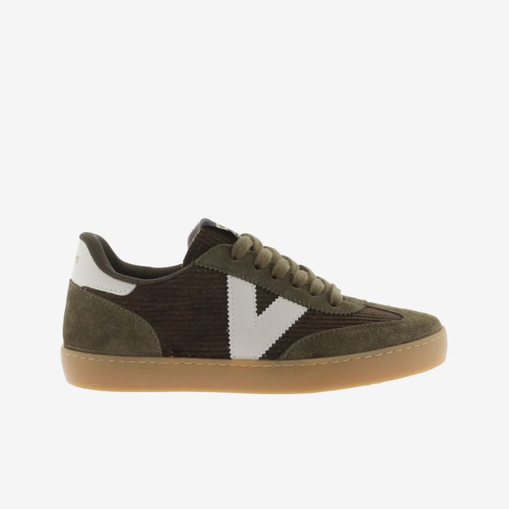 economía 15,98 €Zapatillas para mujer Victoria, fabricadas en España con una cuidada combinación de pana y piezas de serraje al tono. Presentan la icónica V lateral y un detalle trasero en efecto piel blanca que aporta un contraste elegante. El nuevo corte ciclista en la puntera y la suela traslúcida color caramelo evocan un estilo retro con un toque actual. Incorporan además una plantilla ergonómica elaborada con materiales reciclados, que garantiza mayor confort y sostenibilidad en cada paso.